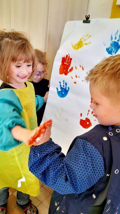 Les Tps Ps et Ms ont manipulé les formes et les couleurs lors de la semaine de la Science. Des objets vert, vert pâle, vert sapin, vert foncé récoltés dans le jardin de l'école.... Mélange des couleurs....